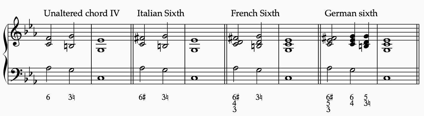 There are few more poorly explained concepts in music theory than Augmented Sixth Chords. I’m not going to go on about them being like dominant chords, because they’re not. An Augmented Sixth Chord is essentially an altered chord IV in first inversion - that just means the third of the chord is in the bass.